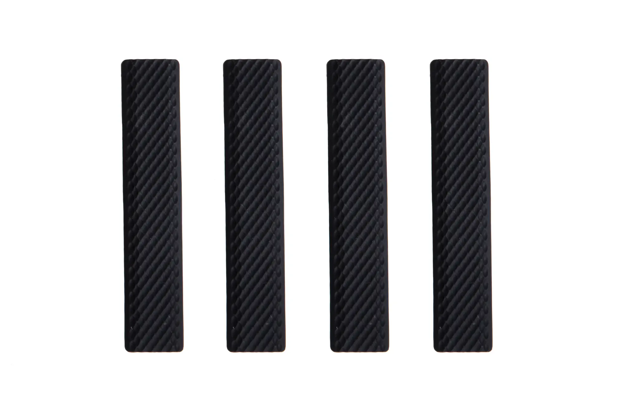 Zestaw okładzin na szyny typu Keymod. Panele zostały wykonane z gumy i pokryte antypoślizgową fakturą.