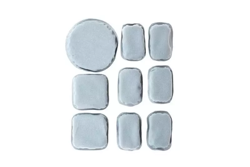 Zestaw 9 miękkich poduszek do montażu wewnątrz różnego typu hełmów/kasków.