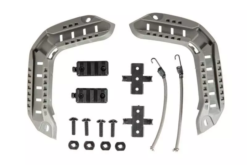 Zestaw szyn montażowych i akcesoriów marki FMA dedykowanych do montażu na hełmach Maritime tego samego producenta. Szyny i akcesoria zostały wykonane z tworzywa sztucznego. W zestawie znajdują się szyny RIS, szyny uniwersalne, dwie szyny montażowe oraz gumy do odciągu NVG. W skład zestawu wchodzą również wszystkie niezbędne do montażu śruby, nakrętki i podkładki.