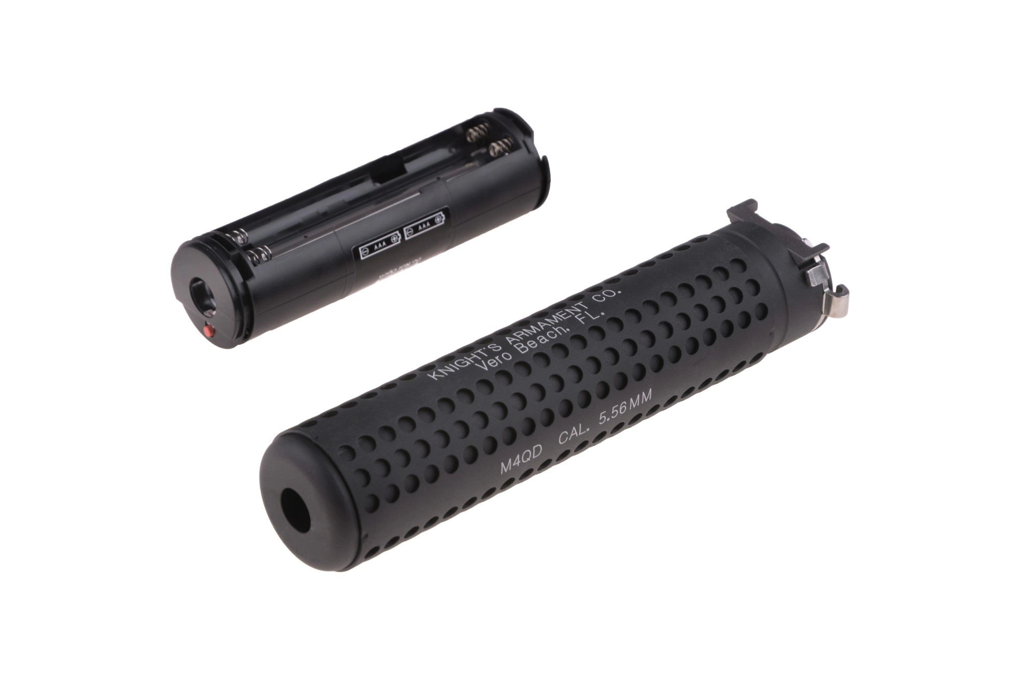 Naświetlacz kulek typu tracer w zamknięty w formie tłumika z oznaczeniami KAC od firmy VFC. Zasilany 4 bateriami AAA, wykonany jest z metalu, posiada lewoskrętny gwint 14mm. Naświetlacz należy umieścić w tłumiku z gwintem 14 CCW oraz QD.  Kulki typu Tracer posiadają właściwości fotoluminescencyjne wywołane uprzednim naświetleniem ich światłem lub napromieniowaniem ich promieniami UV.  Dzięki temu idealnie sprawują się podczas rozgrywek nocnych, doskonale imitując w działaniu amunicję smugową. Ułatwia to korygowanie ognia i może poprawiać jego celność.