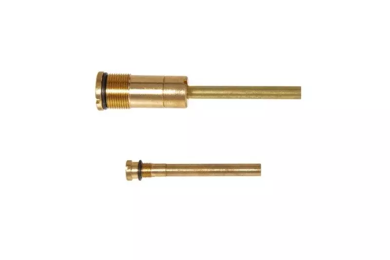 Wykonany z metalu zestaw 2 zaworów: wlewu gazu i dozujący gaz do repliki do magazynków MC-80 przeznaczonych do replik strzelb gazowych.