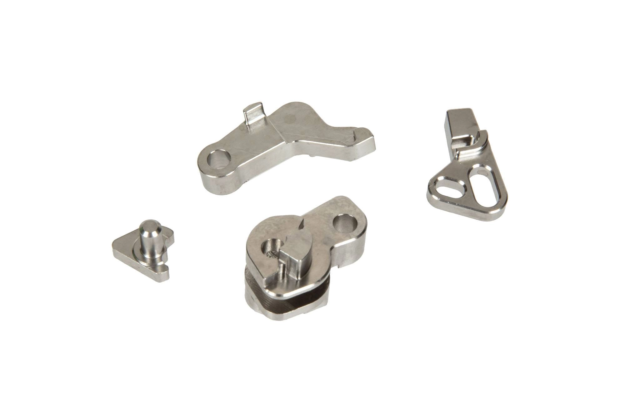 Wykonany ze stali zestaw zbijaka Hammer set do replik G series. Części zostały wypolerowane dla gładkiej i bezawaryjnej pracy.